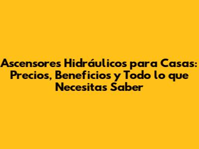 Ascensores Hidráulicos Para Casas: Precios, Beneficios Y Todo Lo Que Necesitas Saber
