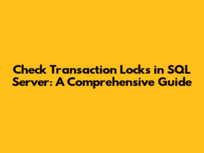 Check Transaction Locks In SQL Server: A Comprehensive Guide
