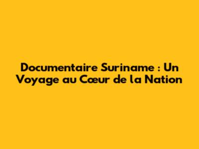 Documentaire Suriname : Un Voyage Au Cœur De La Nation