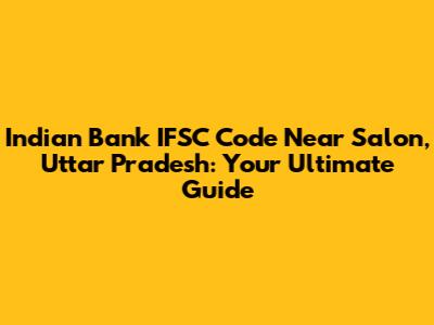 Hey guys! So, you're on the hunt for the Indian Bank IFSC code near Salon, Uttar Pradesh, right? Don't sweat it! Finding the right IFSC code can feel like searching for a needle in a haystack sometimes, especially when you're trying to make a quick bank transfer or check some details. But guess what? You've landed in the perfect spot. We're going to break down exactly how to find that elusive code, why it's super important, and what else you need to know about banking in the Salon area. Stick around, because this guide is going to make your banking life a whole lot easier. We'll cover everything from understanding what an IFSC code actually is to specific details for branches serving Salon. So, let's dive in and get you sorted!