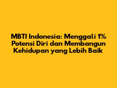 MBTI menawarkan wawasan berharga tentang kepribadian dan potensi diri. Di Indonesia, di mana keberagaman dan dinamika sosial sangat kaya, pemahaman tentang MBTI dapat menjadi kunci untuk sukses dalam karir, hubungan, dan komunikasi. Dengan mengidentifikasi tipe kepribadian kita, kita dapat memahami kekuatan dan kelemahan kita, serta memilih jalan yang sesuai dengan jati diri kita. MBTI bukan hanya sekadar tes kepribadian, tetapi juga alat untuk pengembangan diri yang kuat. Dengan merangkul pengetahuan tentang MBTI, kita dapat mengoptimalkan potensi kita dan membangun kehidupan yang lebih bermakna dan memuaskan. Mari kita manfaatkan MBTI untuk menjelajahi potensi kita, memperkuat hubungan kita, dan menciptakan masa depan yang lebih cerah bagi diri kita sendiri dan masyarakat Indonesia secara keseluruhan. Dengan pemahaman diri yang lebih baik, kita dapat menemukan keunggulan kita dan memberikan kontribusi yang berharga bagi dunia.