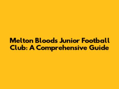 Melton Bloods Junior Football: A Guide For Aspiring Players