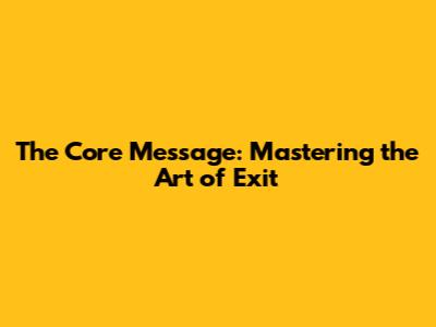 The Core Message: Mastering the Art of Exit