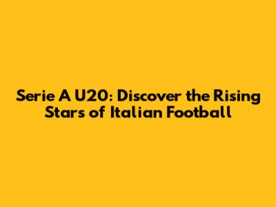 Serie A U20: Discover The Rising Stars Of Italian Football