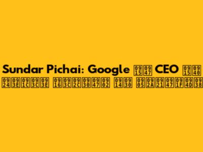 рдирдорд╕реНрддреЗ рджреЛрд╕реНрддреЛрдВ! рдХреНрдпрд╛ рдЖрдк Google рдХреЗ CEO, рд╕реБрдВрджрд░ рдкрд┐рдЪрд╛рдИ (Sundar Pichai) рдХреЗ рдмрд╛рд░реЗ рдореЗрдВ рддрд╛рдЬрд╝рд╛ рдЬрд╛рдирдХрд╛рд░реА рдкрд╛рдирд╛ рдЪрд╛рд╣рддреЗ рд╣реИрдВ? рддреЛ, рдЖрдк рд╕рд╣реА рдЬрдЧрд╣ рдкрд░ рд╣реИрдВ! рдЗрд╕ рд▓реЗрдЦ рдореЗрдВ, рд╣рдо рд╕реБрдВрджрд░ рдкрд┐рдЪрд╛рдИ рдХреА рдЬреАрд╡рди рдпрд╛рддреНрд░рд╛, Google рдореЗрдВ рдЙрдирдХреЗ рджреНрд╡рд╛рд░рд╛ рдХрд┐рдП рдЧрдП рдирд╡реАрдирддрдо рдХрд╛рд░реНрдпреЛрдВ, рдФрд░ рднрд╛рд░рдд рддрдерд╛ рджреБрдирд┐рдпрд╛ рднрд░ рдореЗрдВ рдЙрдирдХреЗ рдкреНрд░рднрд╛рд╡ рдкрд░ рдПрдХ рдирдЬрд╝рд░ рдбрд╛рд▓реЗрдВрдЧреЗред рддреЛ рдЪрд▓рд┐рдП, рдмрд┐рдирд╛ рдХрд┐рд╕реА рджреЗрд░реА рдХреЗ рд╢реБрд░реВ рдХрд░рддреЗ рд╣реИрдВ!