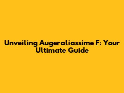 Unlocking The Secrets Of Augeraliassime F: A Comprehensive Guide