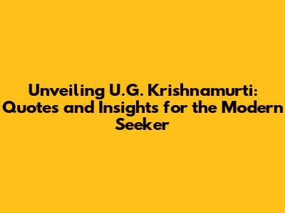 Unveiling U.G. Krishnamurti: Quotes And Insights For The Modern Seeker